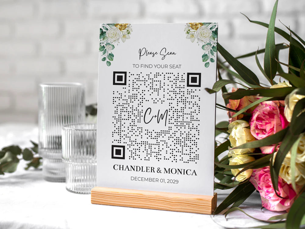 Perfect for weddings and events, our stylish digital seating charts blend technology and elegance — so your guests can simply scan, find their table, and enjoy the moment.